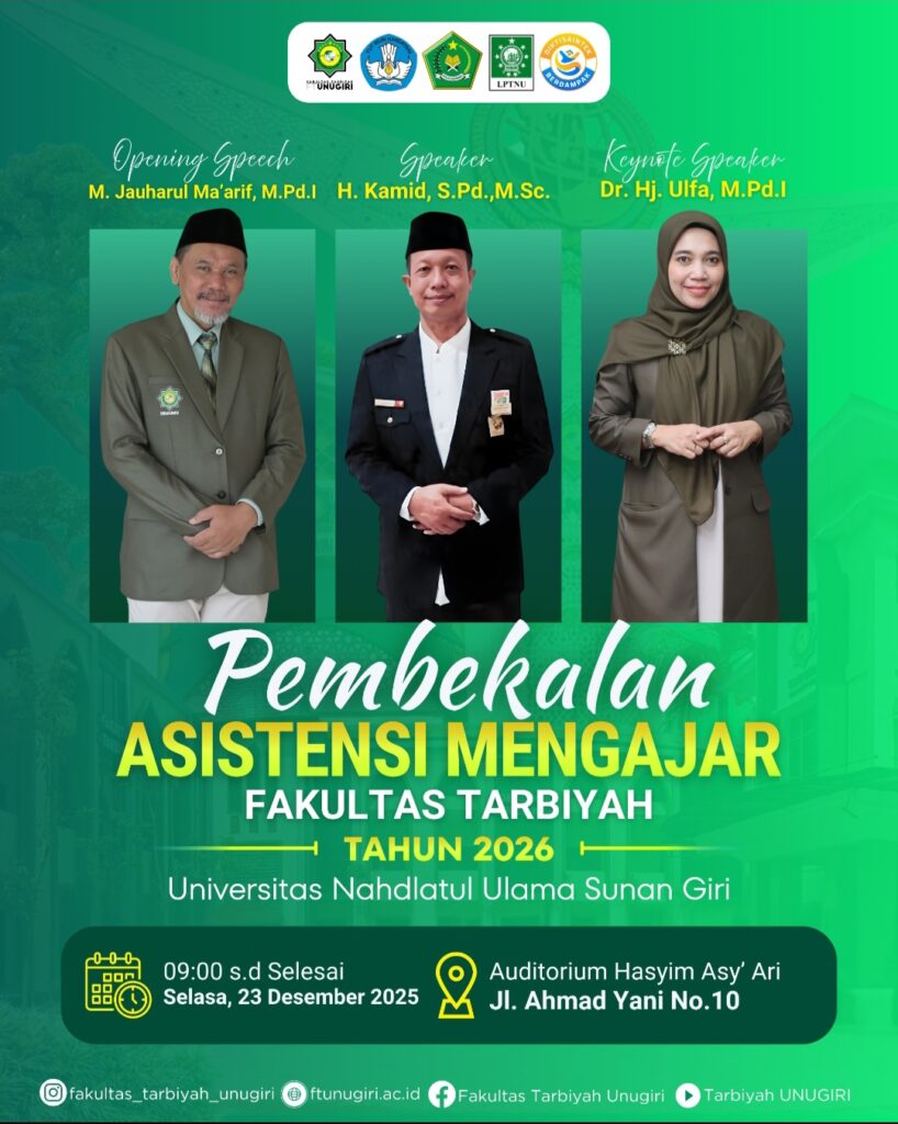 PENGUMUMAN PEMBEKALAN ASISTENSI MENGAJAR TAHUN 2026 FAKULTAS TARBIYAH UNIVERSITAS NAHDLATUL ULAMA SUNAN GIRIadminftDecember 20, 2025 4267-SUn-Pembekalan-Asistensi-Mengajar-FT-Tahun-2026Download Attachments 4267-SUn-Pembekalan-Asistensi-Mengajar-FT-Tahun-2026 (265 kB)